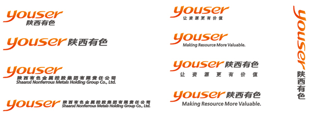 同時(shí),在英語(yǔ)中er是表示人的名詞化后綴,比如teacher; worker等。因此,youser體現(xiàn)企業(yè)是人的聯(lián)合體,體現(xiàn)企業(yè)“以人為本”的核心理念。標(biāo)志以完全獨(dú)立設(shè)計(jì)的美術(shù)英文字體為為主體,配以中文字體,具備獨(dú)特性,同時(shí)更加適合同權(quán)屬企業(yè)標(biāo)志組合。標(biāo)志色彩為初升太陽(yáng)的橘紅色,象征著陜西有色集團(tuán)作為新型的大型集團(tuán)企業(yè),好像一輪蓬勃的紅日,朝氣蓬勃。
