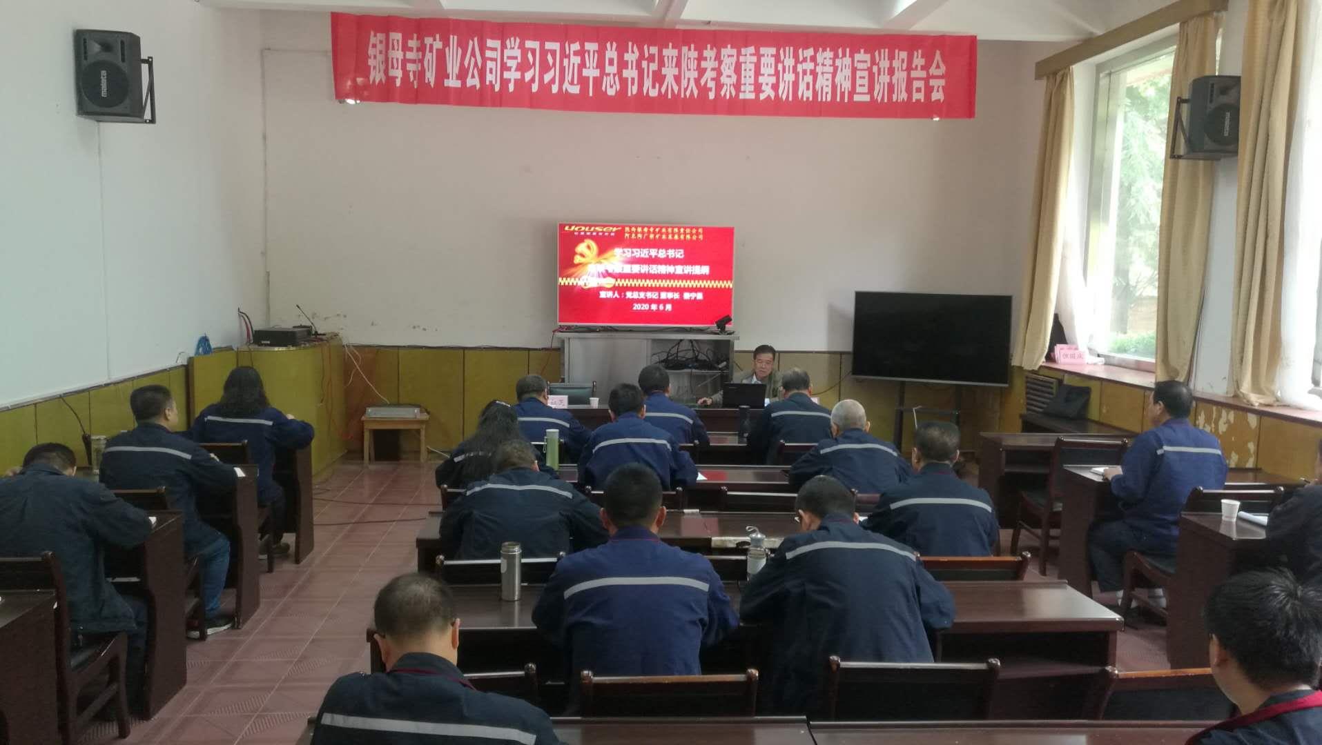 6月10日上午,銀母寺礦業(yè)黨總支書記、董事長秦寧昌向公司黨員領導干部,就習近平總書記來陜考察重要講話重要指示精神作主題宣講報告。