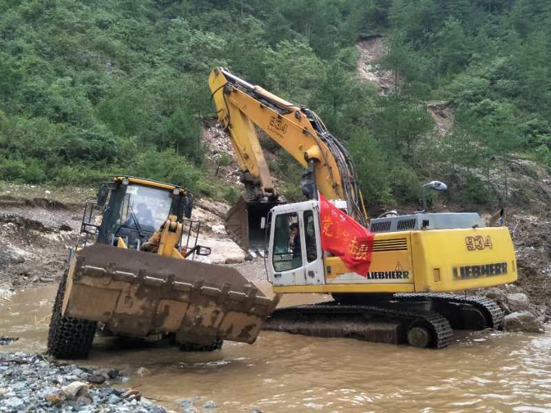 8月10日,沒有顧得上休整,王振克再次奔赴洛南麻坪援建搶修水毀道路。為了保證此次任務的安全順利完成,露天礦養(yǎng)路隊成立黨員突擊隊,由王振克擔任隊長,負責麻坪援建搶險。由于所修道路大多在兩山中間的峽谷地段,環(huán)境惡劣,期間經常出現(xiàn)汛情預警,還時常下大雨。有的路面懸空,有的路段有塌方和泥石流,河道內有暗流和深坑,還有很多水壩和沖溝,王振克在每天設備作業(yè)前或每修一段路前,都要提前判斷人員設備在大雨、塌方、泥石流等危險狀況下的撤離路線和安全地點。有的路段需要墊幾米深的砂石,推近緩慢。有時一晚上大雨沖毀了前一天修的路段,第二天就及時補修。為了防止河水對所修道路的沖刷,挖河改道1000多米。由于遠離礦區(qū),他們每天早晨7點出發(fā),傍晚才能結束一天的工作返回休息,克服了吃飯不便,通訊中斷等困難,爭分奪秒,加班加點,沒有休息過一天,直到8月24日順利完成任務。