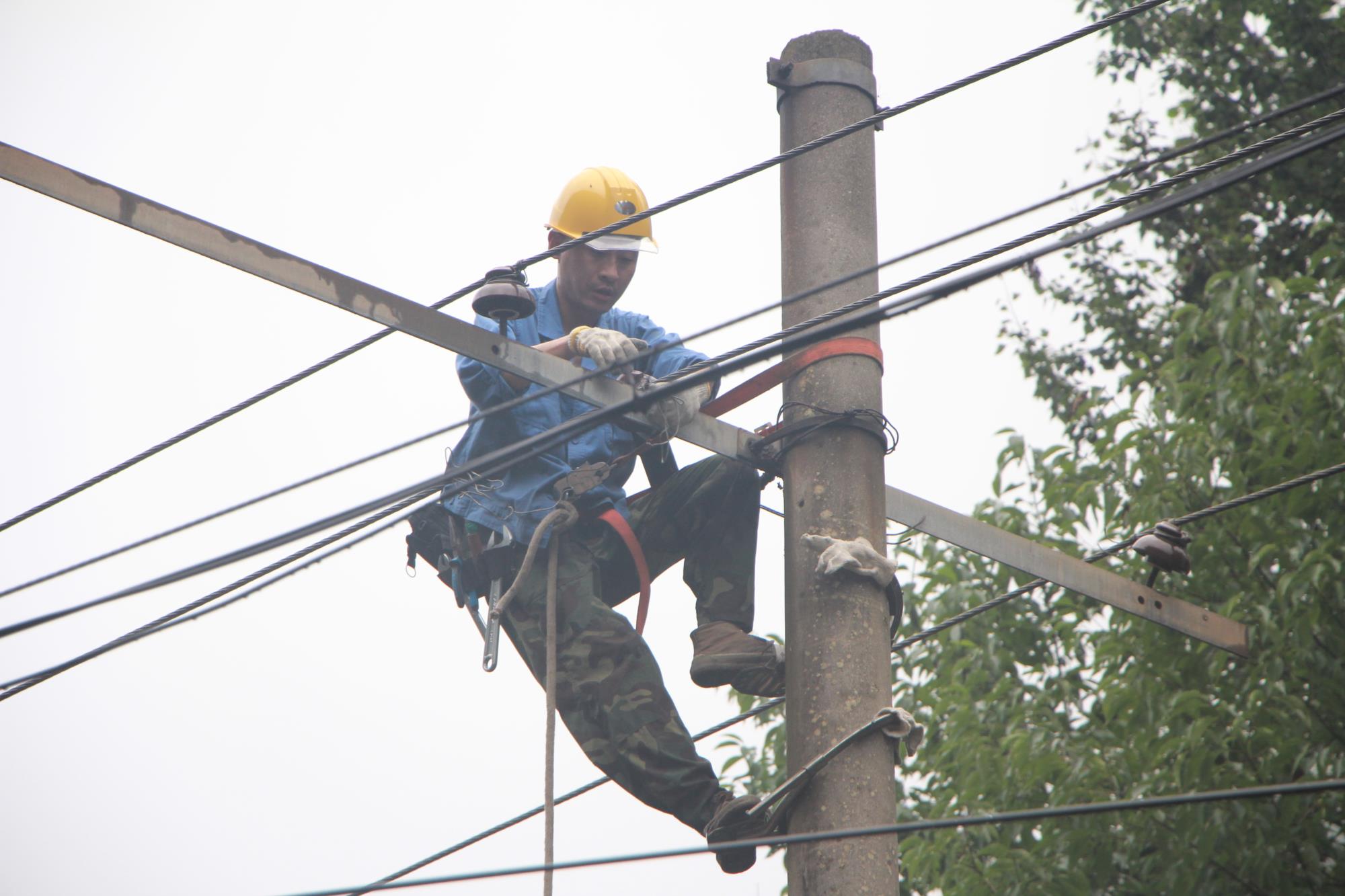 在水庫方向電力中斷后,分公司各應急小組人員開始集結(jié),于凌晨3時,開始分批次巡查,巡查人員身背斧頭在沒有道路的山坡上硬是砍出行走的路,徒步10多公里的水毀路段,對水源電路進行巡查。10時許,經(jīng)排查,發(fā)現(xiàn)33號、34號電桿傾倒,35號電桿底部懸空,沿途多處高壓線纜被滑坡后倒塌的樹木側(cè)壓接地,分公司一方面組織人員砍伐壓線樹木并對百花地區(qū)電力線路進行恢復,一方面立即召開緊急會議,制定搶修方案。