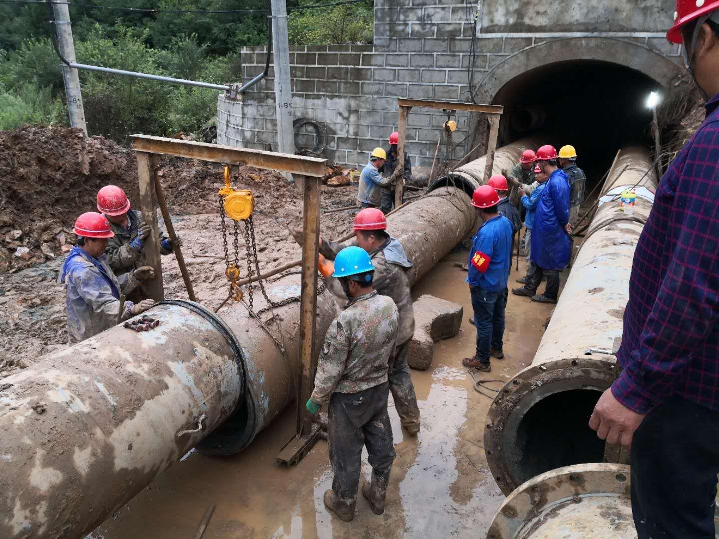 面對(duì)單管重4.5噸的8根管道,要把他們?nèi)繉?duì)接成功。如何吊裝?如何找對(duì)接角度?如何穩(wěn)固支撐?他一一向現(xiàn)場(chǎng)作業(yè)人員進(jìn)行了詳細(xì)的指導(dǎo)?!跋蜃筮厑?lái)一點(diǎn),再來(lái)一點(diǎn),再高一點(diǎn)……”一天下來(lái),嗓子早已沙啞,說(shuō)不出話來(lái),嘴唇干裂的炸開一道道血口子,拖著疲憊至極的身體,依然堅(jiān)守在王家坪四號(hào)洞口。經(jīng)過(guò)現(xiàn)場(chǎng)作業(yè)人員的共同努力,終于在 8月19日20時(shí),王家坪尾礦兩條輸送管道對(duì)接成功。這是一個(gè)重要的時(shí)刻,它標(biāo)志著自8·6特大汛情尾礦庫(kù)輸送管線損毀后,王家坪尾礦庫(kù)具備輸送條件。他除了現(xiàn)場(chǎng)指揮安裝,還負(fù)責(zé)監(jiān)督現(xiàn)場(chǎng)操作安全,確認(rèn)管道的整體恢復(fù)質(zhì)量。
