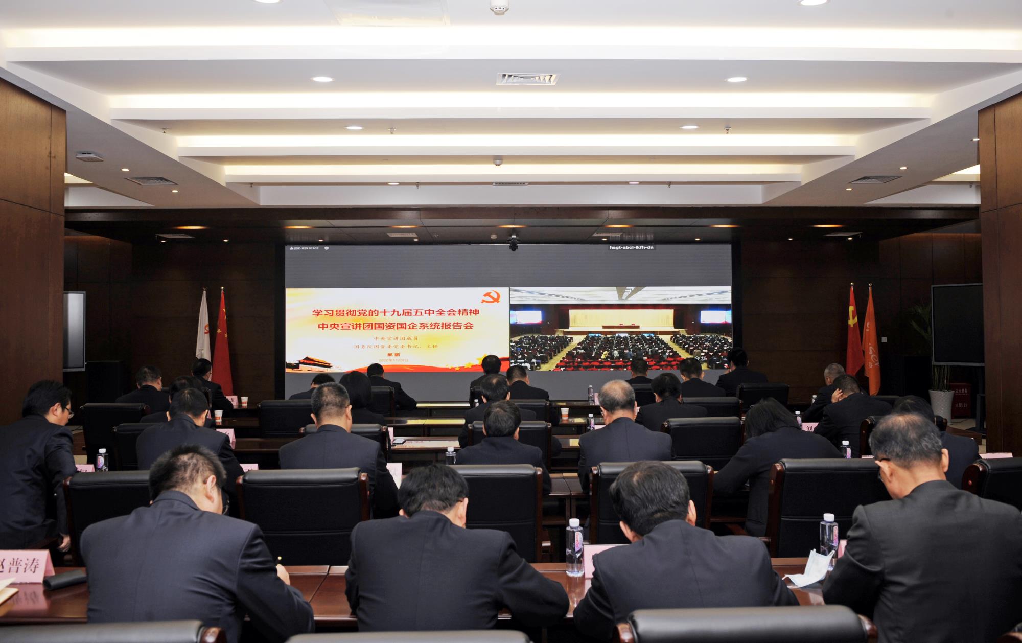 11月9日,學(xué)習(xí)貫徹黨的十九屆五中全會精神中央宣講團(tuán)國資國企系統(tǒng)視頻報告會舉行。中央宣講團(tuán)成員、國務(wù)院國資委黨委書記、主任郝鵬結(jié)合參加黨的十九屆五中全會和現(xiàn)場聆聽學(xué)習(xí)習(xí)近平總書記重要講話的切身體會,結(jié)合國資國企實際作了宣講。陜西有色金屬集團(tuán)組織領(lǐng)導(dǎo)班子成員、中層干部、黨員代表在集團(tuán)總部分會場參加會議。