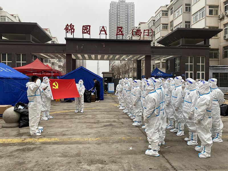 3月14日,面對銅川市疫情形勢全面升級的局面,陜西美鑫公司聞令而動,迅速響應(yīng)銅川市聯(lián)防聯(lián)控的號召,連夜組建30人的陜西美鑫公司防疫幫扶隊,奔赴高風(fēng)險地區(qū)——錦繡園A區(qū)開展幫扶工作,同時,49名志愿者下沉至各自所在的社區(qū),與一線的防疫人員共同開展工作,以逆行者的姿態(tài)下沉社區(qū)、高風(fēng)險地區(qū)“挑重?fù)?dān)、亮身份”筑起一道堅不可摧的“防疫墻”,“銅鑫”協(xié)力打贏疫情防控阻擊戰(zhàn)。