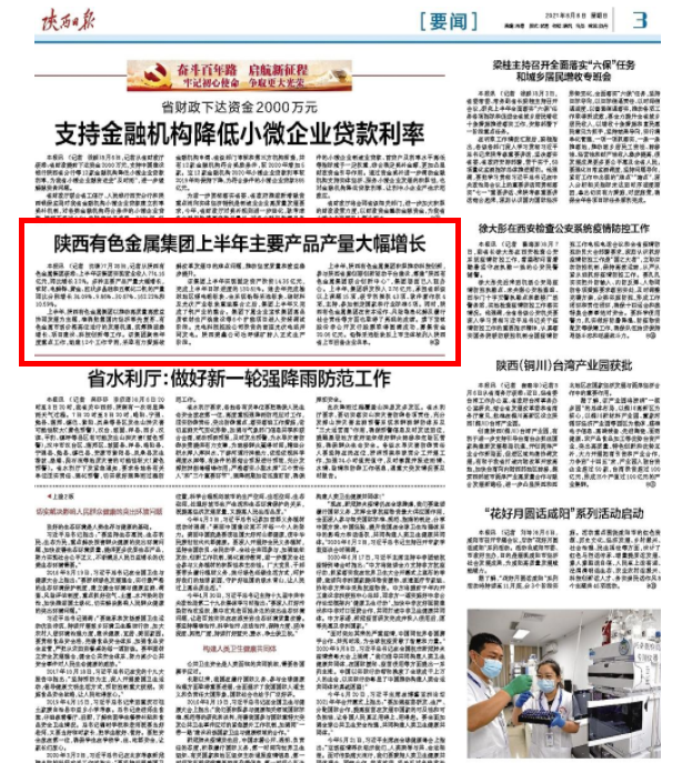 上半年,陜西有色金屬集團以推動高質(zhì)量高效益協(xié)同發(fā)展為主題,準(zhǔn)確把握國內(nèi)經(jīng)濟率先復(fù)蘇、有色金屬市場價格高位運行的發(fā)展機遇,大力踐行“勤快嚴(yán)實精細(xì)廉”作風(fēng),統(tǒng)籌推進(jìn)穩(wěn)增長、項目建設(shè)、科技創(chuàng)新等工作。該集團聚焦年度重點工作,組建12個工作專班,采取有力措施破解改革發(fā)展中的難點問題,推動經(jīng)營質(zhì)量和效益穩(wěn)步提升。