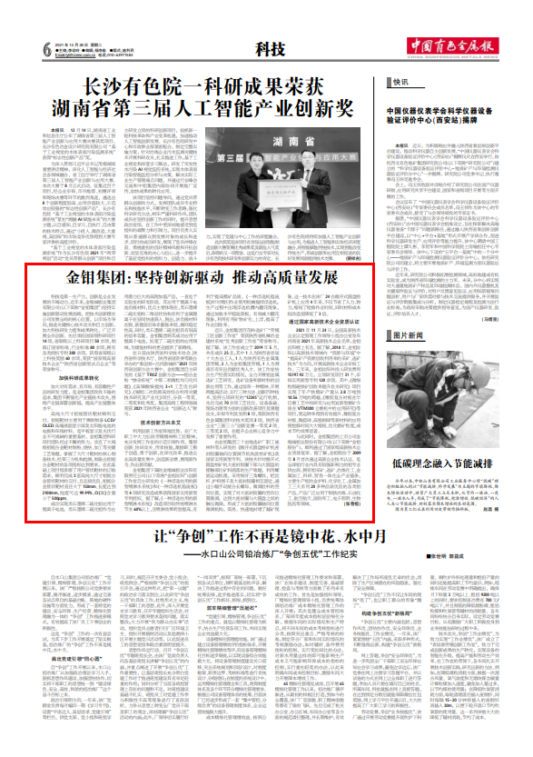 科技是第一生產(chǎn)力,創(chuàng)新是企業(yè)發(fā)展的不竭動(dòng)力。近年來,金堆城鉬業(yè)集團(tuán)有限公司(以下簡稱“金鉬集團(tuán)”)堅(jiān)持實(shí)施創(chuàng)新驅(qū)動(dòng)發(fā)展戰(zhàn)略,把技術(shù)創(chuàng)新擺在公司發(fā)展全局的核心位置,以市場為導(dǎo)向,推進(jìn)關(guān)鍵核心技術(shù)攻關(guān)和自主創(chuàng)新,加大科技研發(fā)力度和成果轉(zhuǎn)化,廣泛開展全員創(chuàng)新。先后承擔(dān)國家級(jí)科研項(xiàng)目14項(xiàng),省部級(jí)以上科研項(xiàng)目50余項(xiàng),制修訂國家標(biāo)準(zhǔn)、行業(yè)標(biāo)準(zhǔn)80余項(xiàng),擁有各類授權(quán)專利300余項(xiàng),獲得省部級(jí)以上科技獎(jiǎng)勵(lì)60余項(xiàng),榮獲“國家級(jí)高新技術(shù)企業(yè)”“陜西省創(chuàng)新型試點(diǎn)企業(yè)”等榮譽(yù)稱號(hào)。