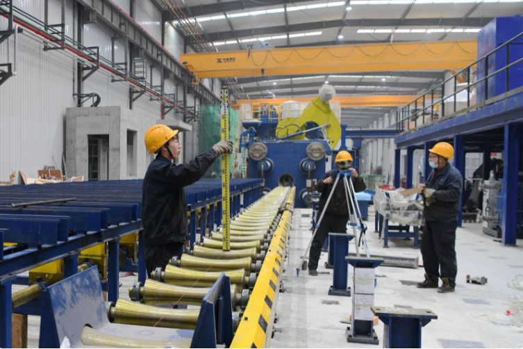 寶鈦集團高品質(zhì)鈦錠、管材、型材生產(chǎn)線建設項目現(xiàn)場,工人們正在安裝調(diào)試設備