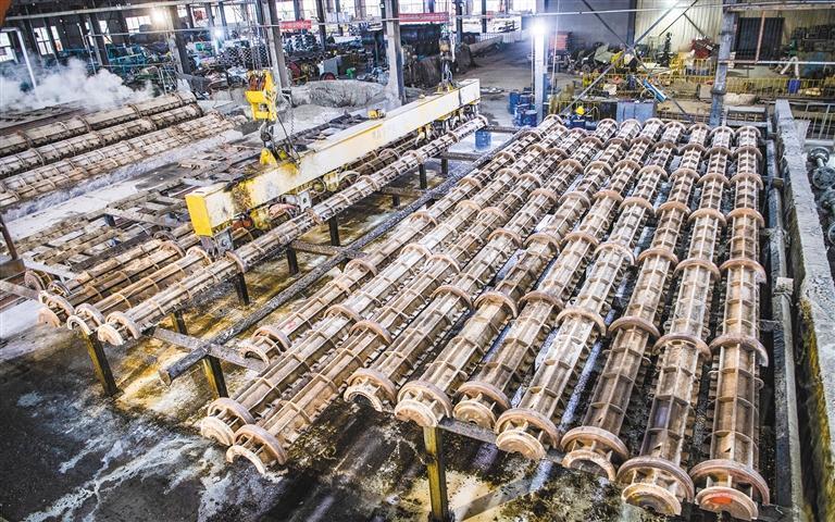 11月11日,工人在陜西有色萬通建材有限公司混凝土管樁生產(chǎn)線上作業(yè)。目前,該公司可生產(chǎn)直徑300毫米至800毫米規(guī)格預(yù)應(yīng)力高強度混凝土管樁、空心方樁、預(yù)制樓梯等混凝土預(yù)制構(gòu)件,產(chǎn)品廣泛應(yīng)用于建筑、公路、水利等工程領(lǐng)域。該公司是西北地區(qū)新型綠色建材龍頭企業(yè),今年前10個月實現(xiàn)產(chǎn)值1.13億元。本報記者 袁景智攝