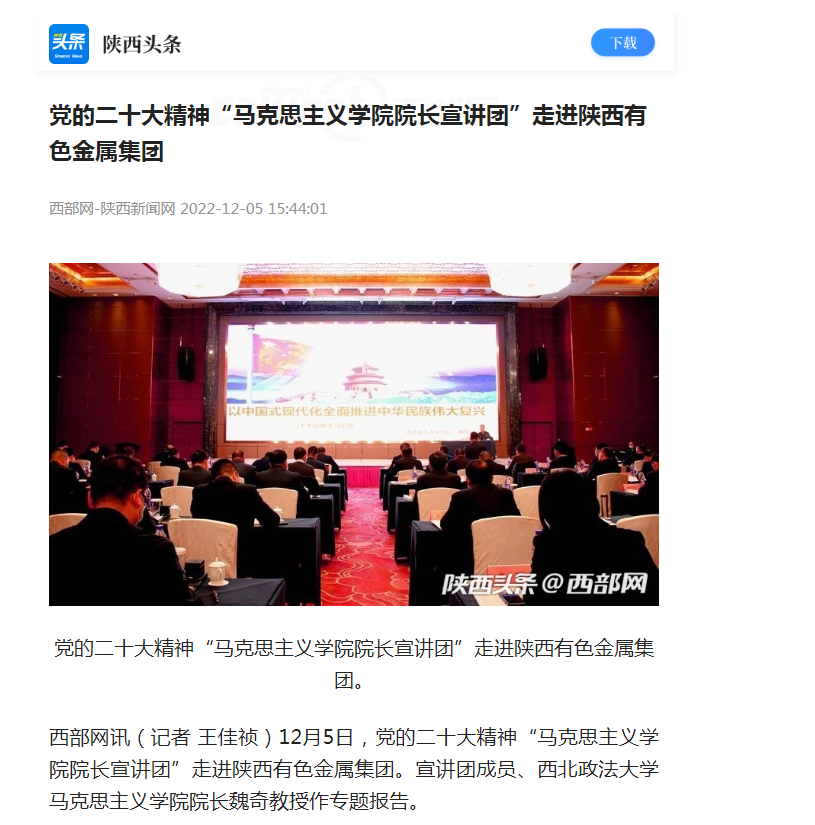 黨的二十大精神“馬克思主義學(xué)院院長宣講團”走進陜西有色金屬集團。