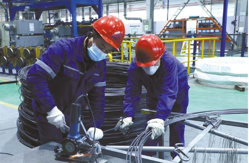 2月10日,在金鉬集團金屬分公司鉬制品分廠,一線工人正在用切割機對鉬桿進行切割作業(yè)。1月份,鉬制品分廠生產(chǎn)鉬桿30噸,圓滿完成生產(chǎn)任務(wù)。本報記者 沈謙攝