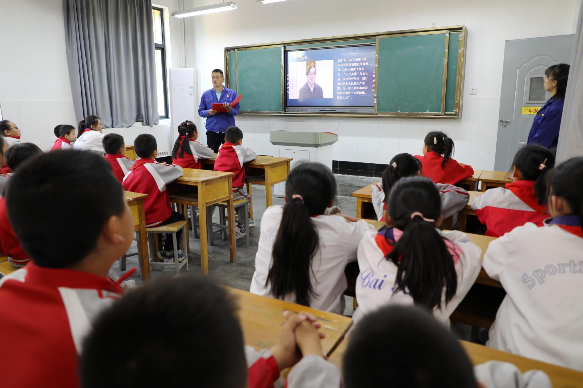 “大手拉小手 模范事跡進校園”活動過程中,志愿者們向小學(xué)生宣講“抗疫英雄”張伯禮、“時代楷模”張桂梅的事跡,以榜樣力量助力少年兒童健康成長。共同唱響《歌唱祖國》,攜手變身“礦區(qū)文明小衛(wèi)士”…… 志愿者與孩子們約定,要做有“家國情懷”的人。