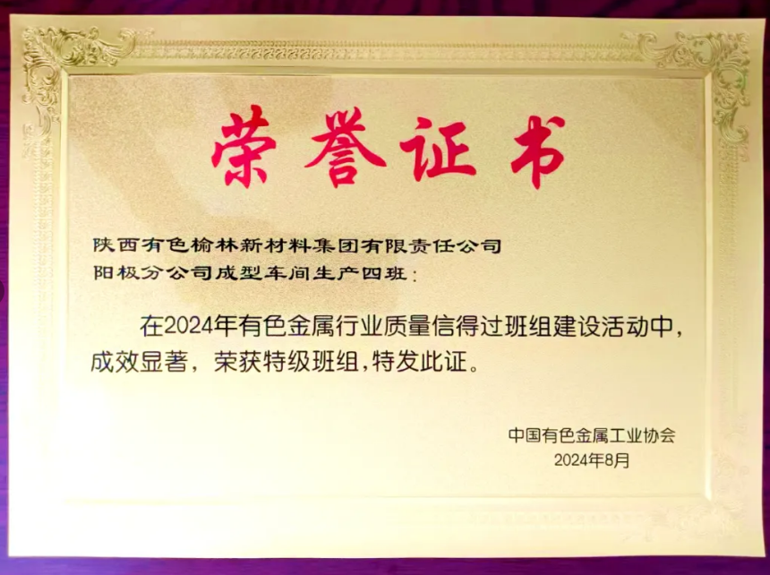 近日,2023—2024年度有色金屬行業(yè)優(yōu)秀質(zhì)量管理小組、質(zhì)量信得過班組等活動評選結(jié)果揭曉,榆林新材料集團陽極分公司成型車間生產(chǎn)四班榮獲2023——2024年度有色金屬行業(yè)質(zhì)量信得過班組“特級班組”稱號。