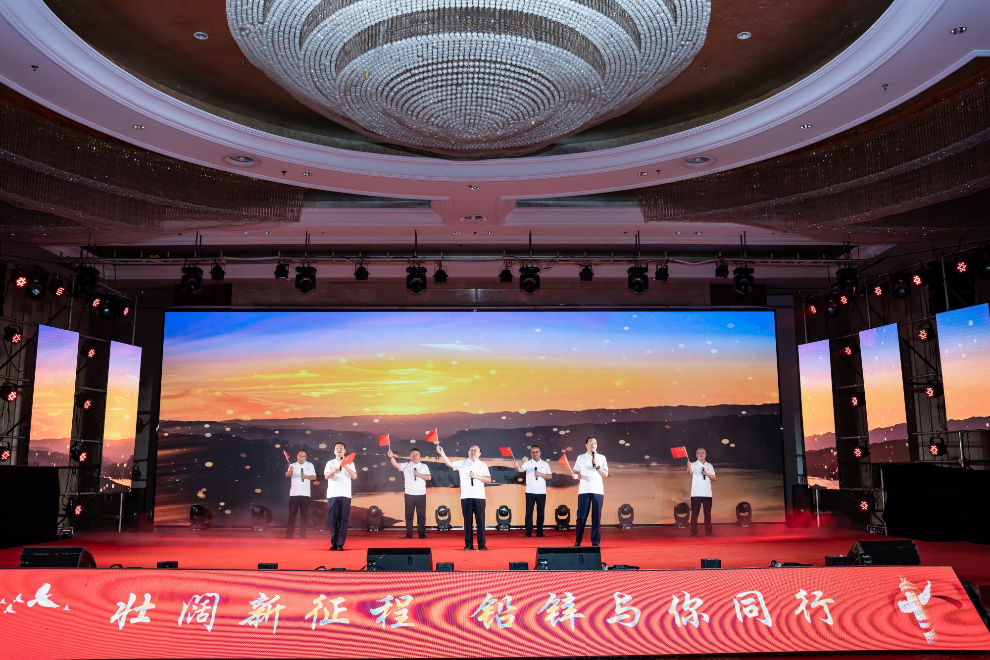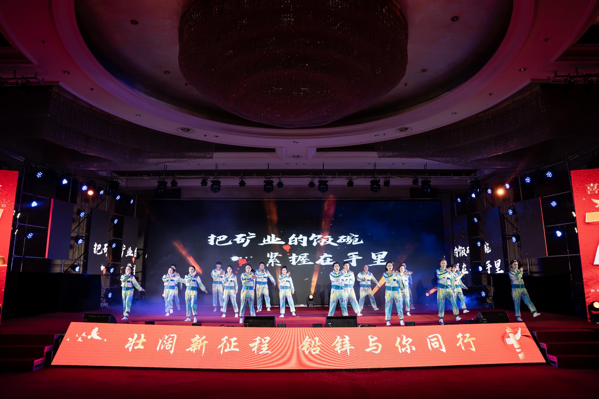 當(dāng)磅礴激昂的音樂響起,開場舞《新起航》瞬間點燃了現(xiàn)場熱烈的氛圍。舞者們?nèi)橥度搿⑻じ瓒校瑤е般U鋅人”對揚帆新征程、挑戰(zhàn)新賽道的信心與決心,在舞臺上歡快律動,贏得了觀眾雷鳴般的掌聲。本次文藝匯演圍繞“壯闊新征程 鉛鋅與你同行”主題,分三個篇章講述了中國共產(chǎn)黨帶領(lǐng)全國各族人民砥礪前行、不懈奮斗,從一窮二白走向繁榮昌盛,以及“鉛鋅人”堅持一張藍圖繪到底,不懼風(fēng)雨、不畏風(fēng)險、團結(jié)拼搏的心路歷程。
