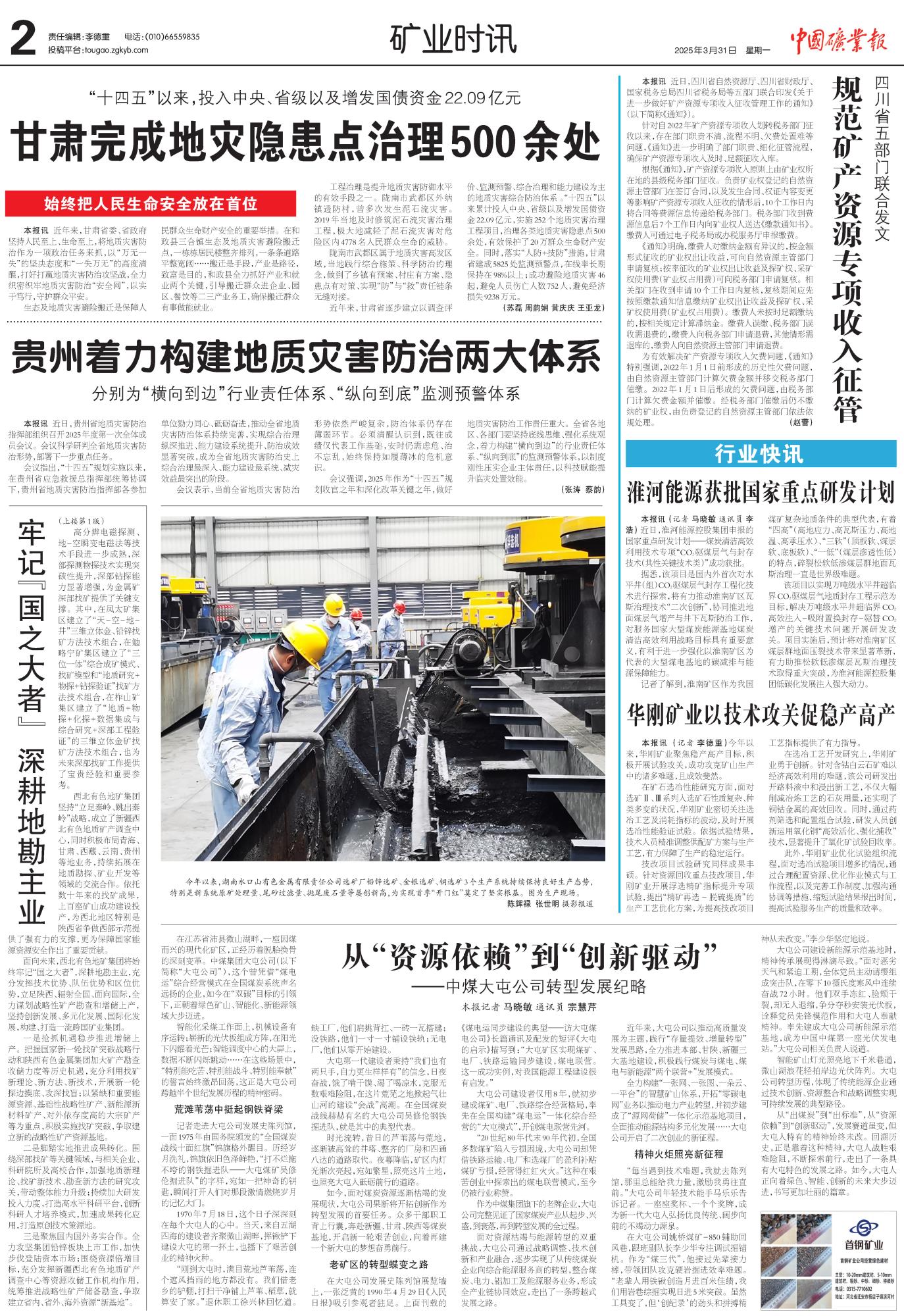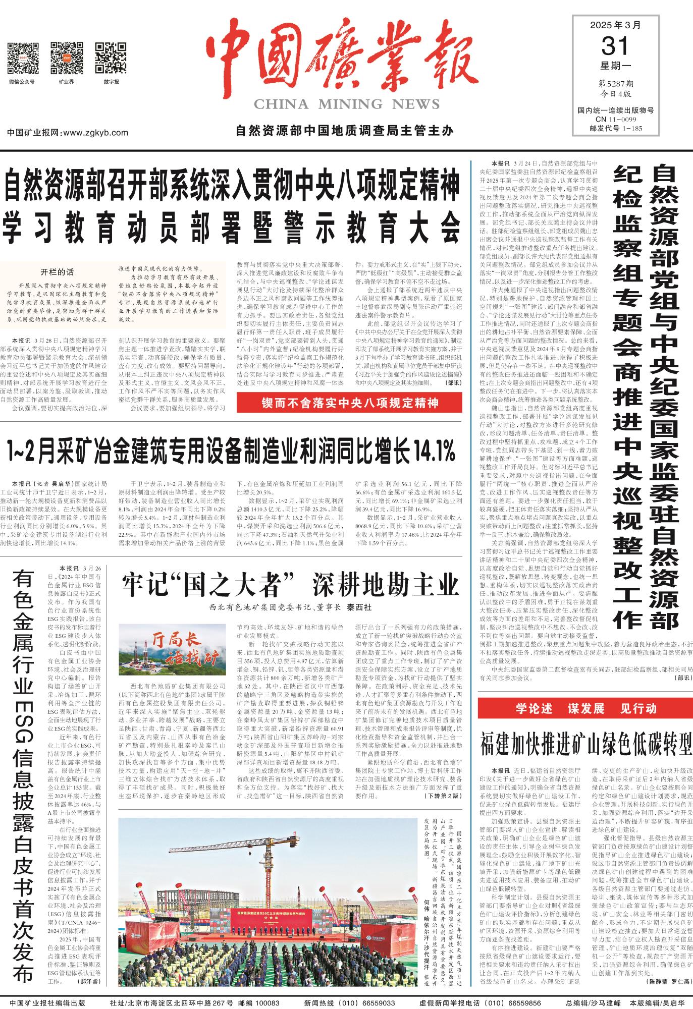 近期,《中國礦業(yè)報(bào)》開設(shè)了“廳局長(zhǎng)話找礦”欄目。該欄目邀請(qǐng)各省(區(qū)、市)自然資源主管部門、地勘單位負(fù)責(zé)人撰寫署名文章,深入交流央地企合作新機(jī)制下“十四五”找礦成績(jī)和經(jīng)驗(yàn),并謀劃展望“十五五”找礦工作。2025年3月31日,《中國礦業(yè)報(bào)》頭版刊出了該欄目的第21篇文章,即地礦集團(tuán)、黃金集團(tuán)黨委書記、董事長(zhǎng)秦西社的署名文章。全文如下: