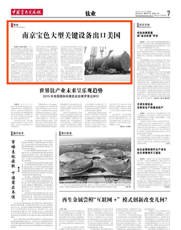 近日,由南京寶色股份公司制造的63臺(tái)套大型反應(yīng)器、換熱器、塔器、儲(chǔ)罐及管道等設(shè)備陸續(xù)發(fā)往美國(guó),這是南京寶色股份公司首次承接的國(guó)外大型PTA項(xiàng)目,標(biāo)志著南京寶色股份公司的制造能力得到進(jìn)一步提升。