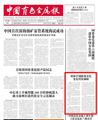 6月28日上午,陜西省省長胡和平在陜西有色集團董事長、黨委書記黃曉平陪同下到陜西有色光電科技有限公司調(diào)研指導工業(yè)穩(wěn)增長工作。陜西省政府秘書長陳國強,省級有關部門及西咸新區(qū)有關負責人參加調(diào)研。