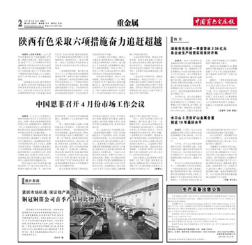 五是加快技術(shù)改造,推動企業(yè)轉(zhuǎn)型升級。加快與美國REC公司的合作,推動企業(yè)國際化進程,提升國際影響力和競爭力。實施鉬采選升級改造項目和鈦及鈦合金板材產(chǎn)業(yè)升級改造項目,全面提升有色金屬采選加工能力及水平。