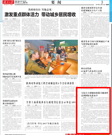 陜西日報、西部網(wǎng):寶鈦自主研制深潛器關(guān)鍵部件達到國際先進水平