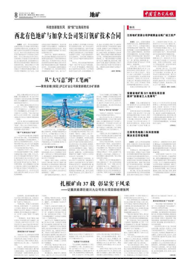 近日,西北有色地質礦業集團有限公司與加拿大預見發展公司簽署技術服務合同,這是繼2017年履行完成雙方簽定的技術合作框架協議之后,再次為其在美國內華達州釩礦項目提供選冶擴大實驗及礦山技術服務。對方已預付資金20多萬美元,后續將按工作進度支付技術服務資金、設計建設資金等。合同承接單位主要為西北有色地礦集團下屬的西北有色地質研究院,該院長期致力于石煤釩礦高效開發利用及產業化研究,率先提出了石煤釩礦機械選礦拋尾工藝并實現了拌酸熟化工藝產業化,目前在低品位釩礦石酸浸技術、低品位氧化銅礦石浮選關鍵技術、含碳銅鉛鋅礦選礦新藥劑試驗研究與應用、難處理金紅石關鍵技術成果推廣等方面已達國際領先水平。