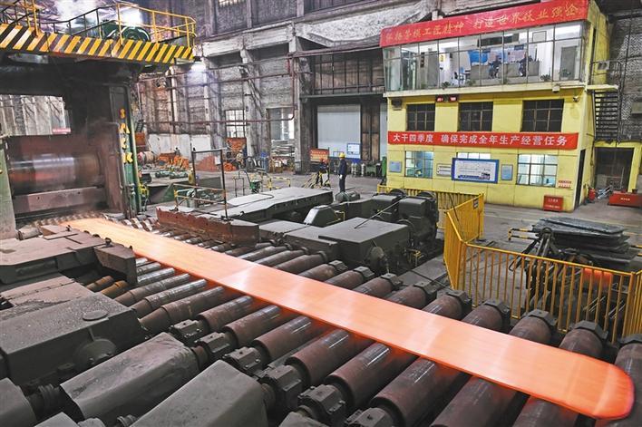 11月26日,工人在寶鈦集團(tuán)寬厚板材料公司三米三熱軋生產(chǎn)線上作業(yè)。寶鈦集團(tuán)有限公司是