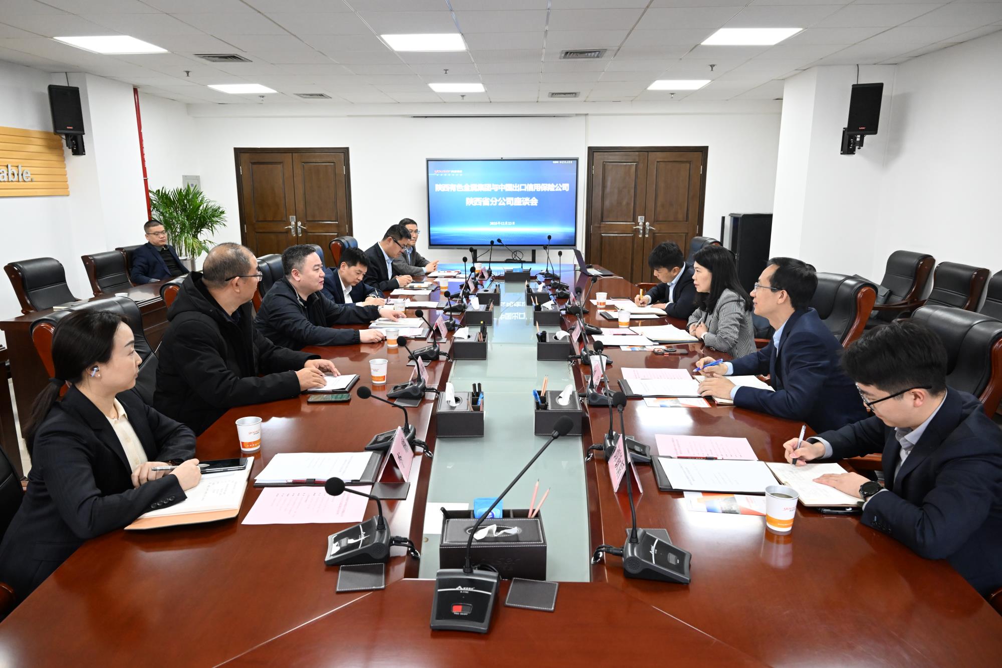 12月23日,陜西有色金屬集團(tuán)黨委副書記、董事、總經(jīng)理莫勇在集團(tuán)總部與中國(guó)出口信用保險(xiǎn)公司陜西分公司(以下簡(jiǎn)稱“中信保陜西分公司”)總經(jīng)理、黨委書記黃山一行圍繞海外市場(chǎng)拓展、風(fēng)險(xiǎn)防控體系建設(shè)、金融服務(wù)賦能產(chǎn)業(yè)高質(zhì)量發(fā)展等座談交流。中信保陜西分公司副總經(jīng)理、紀(jì)委書記劉琦參加座談。