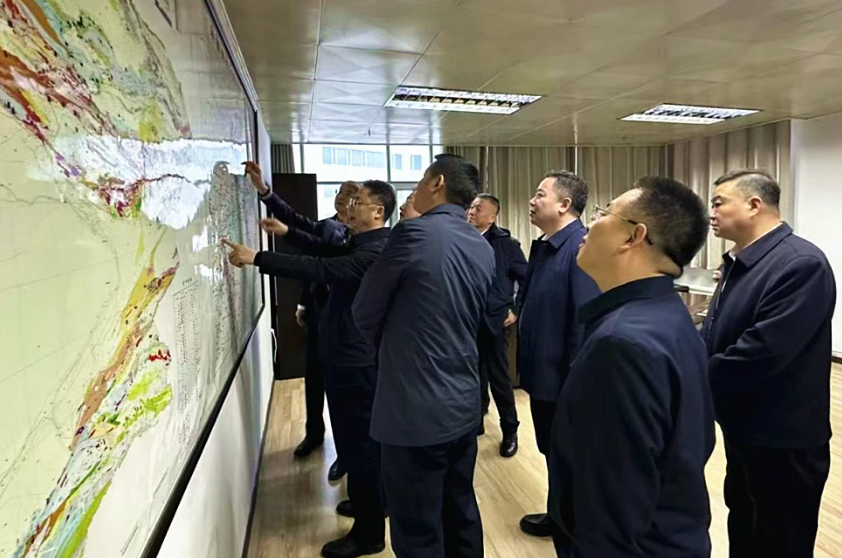 吳群英一行實(shí)地察看了新疆專班辦公場(chǎng)所,隨后走進(jìn)地質(zhì)辦公室,詳細(xì)了解新疆維吾爾自治區(qū)礦產(chǎn)資源分布現(xiàn)狀及地質(zhì)工作開(kāi)展等相關(guān)情況。