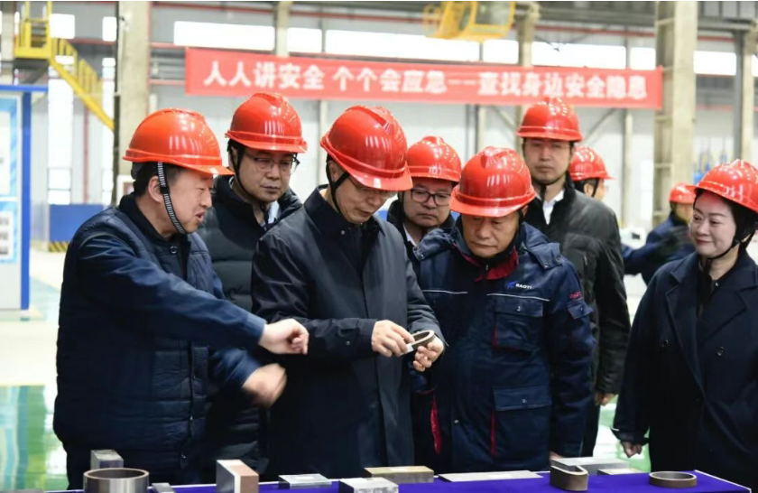 吳群英一行前往寶鈦眉縣產(chǎn)業(yè)園,先后深入寶鈦金屬復(fù)合材公司、寶鈦精工及寶鈦合金生產(chǎn)線實地督導(dǎo),并到寶雞科技新城綜合保稅區(qū)寶鈦萬豪開展現(xiàn)場調(diào)研,叮囑相關(guān)負責(zé)人要緊盯春節(jié)前安全生產(chǎn)、環(huán)保管控關(guān)鍵環(huán)節(jié),詳細核查生產(chǎn)運營、設(shè)備運行、產(chǎn)品研發(fā)等工作落實情況,始終繃緊安全環(huán)保之弦,嚴把各環(huán)節(jié)管控關(guān)口,堅決守住安全生產(chǎn)底線,確保生產(chǎn)經(jīng)營平穩(wěn)有序。隨后,看望慰問了全國有色金屬行業(yè)勞模張斌和困難黨員,與他們親切交談,深入了解工作生活近況,要求相關(guān)部門持續(xù)做實做細職工服務(wù)保障工作,用心用情解決職工急難愁盼問題,切實增強職工的歸屬感幸福感獲得感。