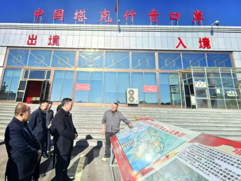 圖為在塔克什肯口岸考察