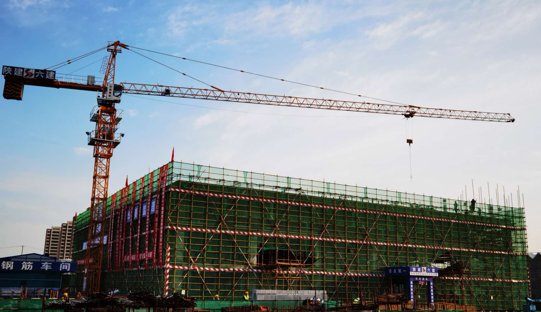 創新中心自開工建設以來,先后面對新冠肺炎疫情爆發、連續雨季以及行政區域政策收緊等諸多困難和壓力,黃金集團主要領導多次親臨現場督戰、指導,匯創公司上下一心、科學組織,積極配合協調鄠邑區住建局等部門和西戶高新管委會等單位,嚴密策劃、精心實施,全力確保項目建設始終合法合規、穩步推進,成功按照既定計劃完成了封頂節點工作。