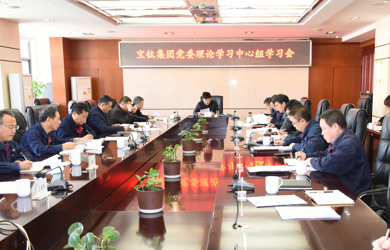 11月2日,寶鈦集團黨委理論學習中心組在機關九樓會議室召開學習會,集體學習了黨的十九屆五中全會精神等內容。公司黨委書記、董事長王文生主持會議。公司領導班子成員參加會議。寶鈦股份副總經理、總會計師、董秘、總經理助理,公司紀委副書記、黨委部門負責人等列席會議。