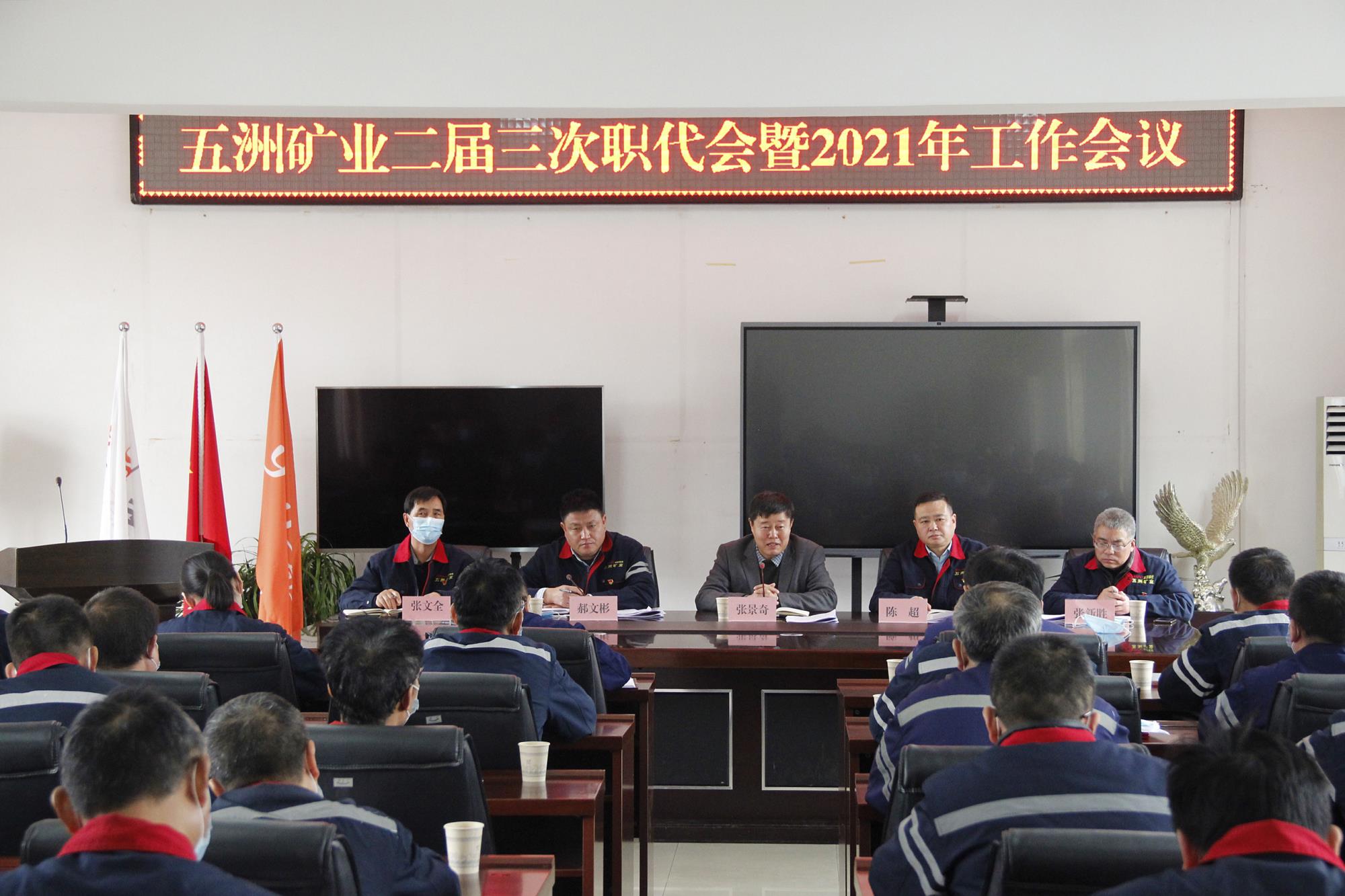 辭舊歲一元復始,迎新年萬象更新。2月4日上午,五洲礦業二屆三次職工代表大會暨2021年工作會議在公司四樓會議室召開。公司班子成員、職工代表、受表彰的集體獎和個人獎代表共47人參加了會議。職代會應到職工代表55名,實到47名,符合法定人數。會議由黨委副書記、副總經理郝文彬主持。