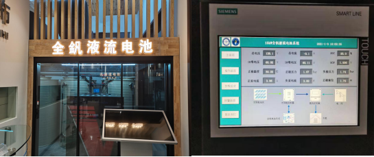 該系統由電解液循環系統、電池系統模塊、電力控制模塊以及遠程控制系統組成,系統設計額定輸出功率分別為8kW和15kW,額定容量均為80kWh。此外,該全釩液流電池儲能系統與太陽能光伏裝置配套的正式投用,改變了能源利用效率,實現了光伏發電、釩電池儲能經設備轉化為直流和交流電,作為項目現場機房重要負載的備用電源使用,以確保負載的供電可靠性。