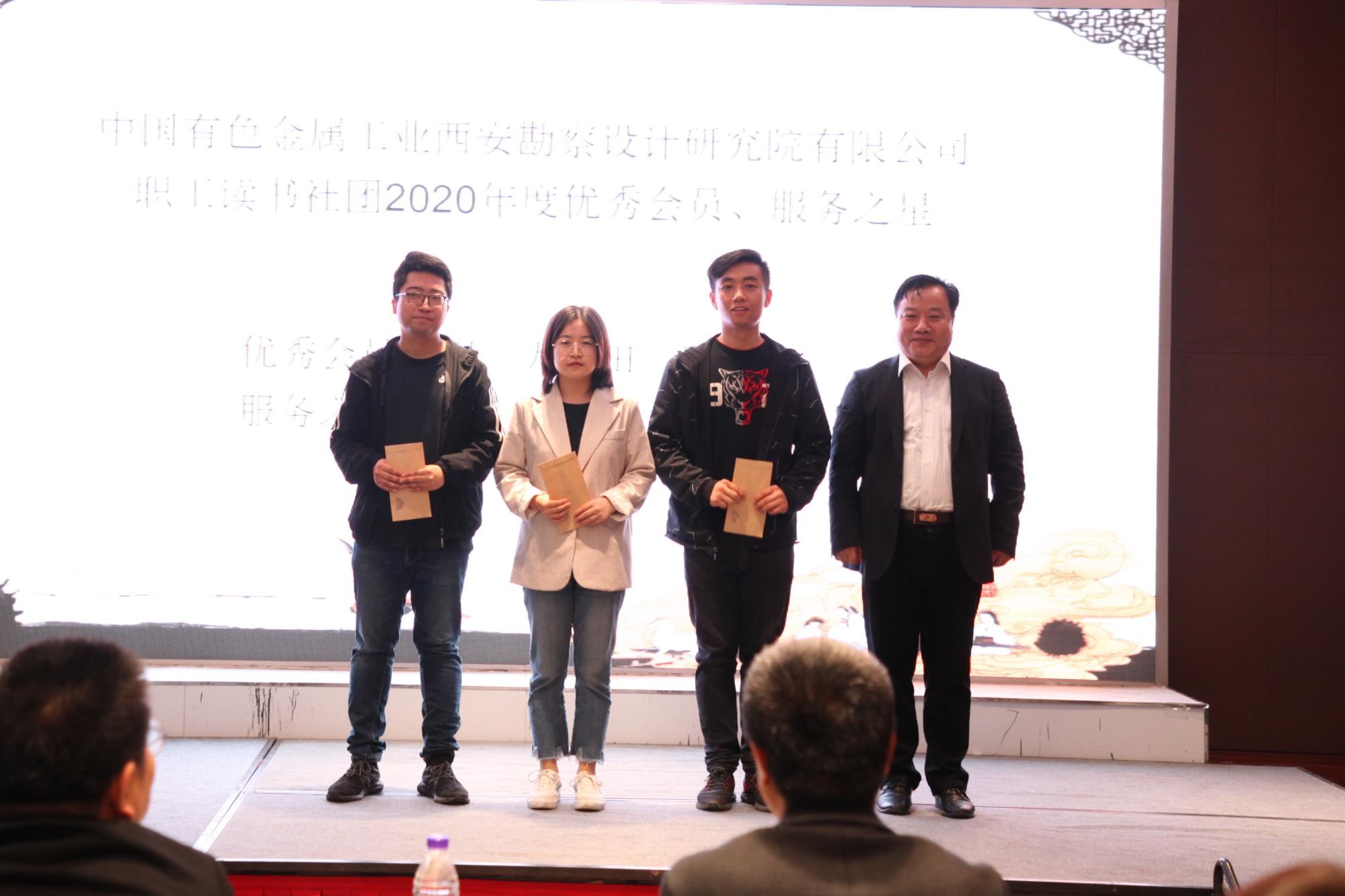 活動分為兩部分,第一部分為讀書社團2020年度總結表彰會。會上,公司副總經理、讀書社團會長董忠級同志為讀書社團西安有色設計院分會進行了授牌。公司紀委書記韓秋分別為獲得優秀會員和服務之星榮譽的會員頒發了榮譽證書。讀書社團有色建設分會、曲江國際飯店分會負責人分別就各分會讀書活動開展情況進行了匯報。社團秘書長許蒙國匯報了2020年度主要工作及2021年重點工作安排。