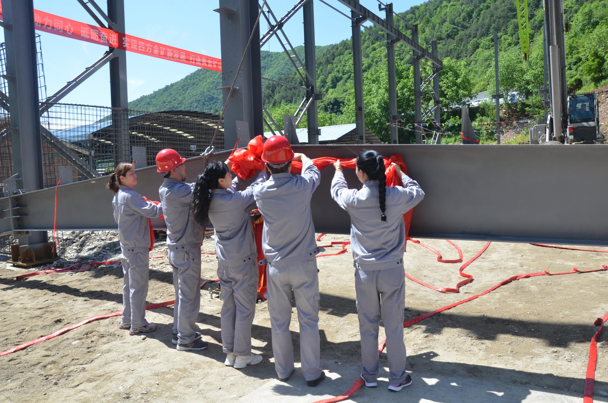 5月16日,正值四方金礦成立24周年。在這特殊的日子里,黃金集團四方金礦采選工藝技改項目浮選車間廠房上梁儀式順利舉行,標志著浮選車間廠房鋼結構安裝進入新階段。公司領導班子成員,施工單位、監理單位代表以及公司部分職工參加活動。
