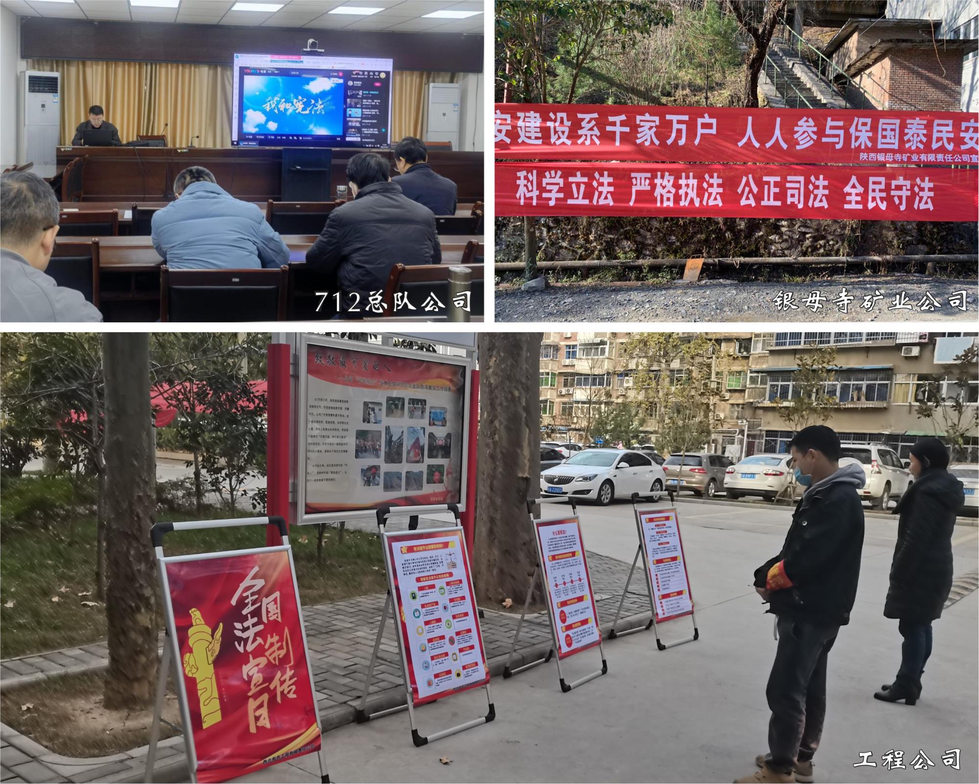 廣泛營造宣傳氛圍。712總隊公司組織觀看了《我和憲法》微視頻,帶領職工深入了解憲法承載的歷史記憶和治國理政中的重要作用。工程公司、銀母寺礦業公司積極開展“我為群眾辦實事——憲法進機關、進廠區”活動,通過懸掛條幅、發放學習資料、電子屏宣傳、擺放宣傳展板等形式,積極宣傳憲法、習近平法治思想和黨的十九屆六中全會精神,法務部門工作人員現場為職工答疑解惑,引導職工尊法學法守法用法,切實提高了職工對憲法的知曉度。四方金礦、717總隊公司、物化探總隊公司等單位在企業微信等平臺開設專欄,廣泛宣傳憲法、安全生產法等相關知識,廣受職工好評。