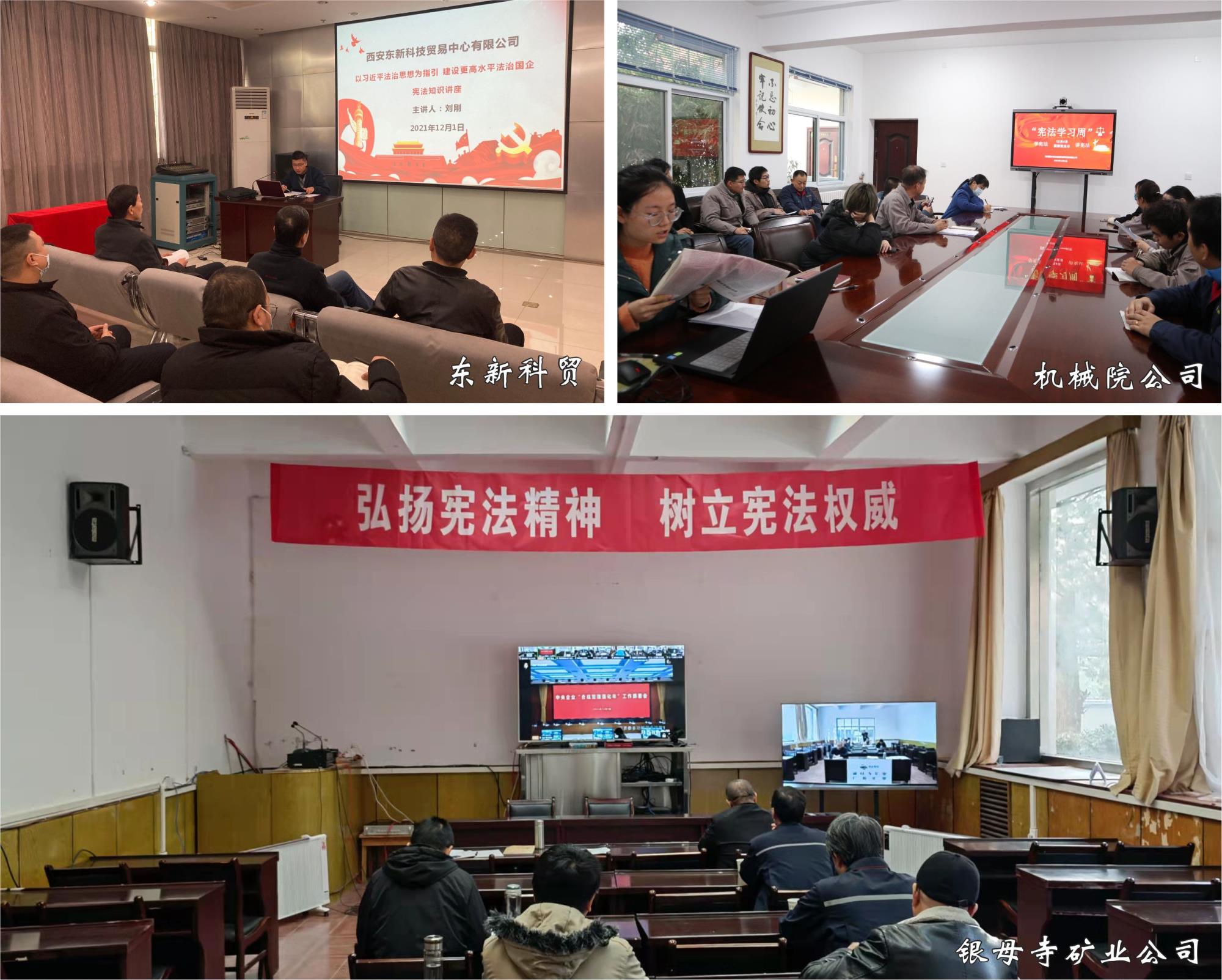 舉辦憲法知識講座。東新科貿公司圍繞“以習近平法治思想為指引 堅定不移走中國特色社會主義法治道路”宣傳周主題,為干部職工深入解讀了憲法的概念、特征、基本原則、歷史背景及發展歷程等內容。機械院公司宣講了《中共中央關于黨的百年奮斗重大成就和歷史經驗的決議》中的重點內容。工程公司專題宣講了習近平法治思想的重大意義、黨的十九屆六中全會精神等內容。銀母寺礦業公司召開2021年“憲法宣傳周”專題工作會,并以視頻形式參加了陜西有色金屬集團第36期法治大講堂。各單位宣講活動切合實際、內容豐富,進一步增強了職工法治思維,為學習憲法、遵守憲法、貫徹憲法,推進公司依法治企工作打下了堅實基礎。