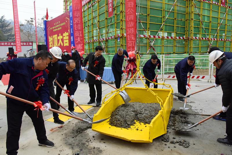 儀式上,賈栓孝下達封頂令;吳迪為封頂儀式致辭;項目組副組長、實驗中心主任李劍介紹了項目情況;施工單位負責人介紹了施工情況;基建工程部主任趙亦理主持儀式。