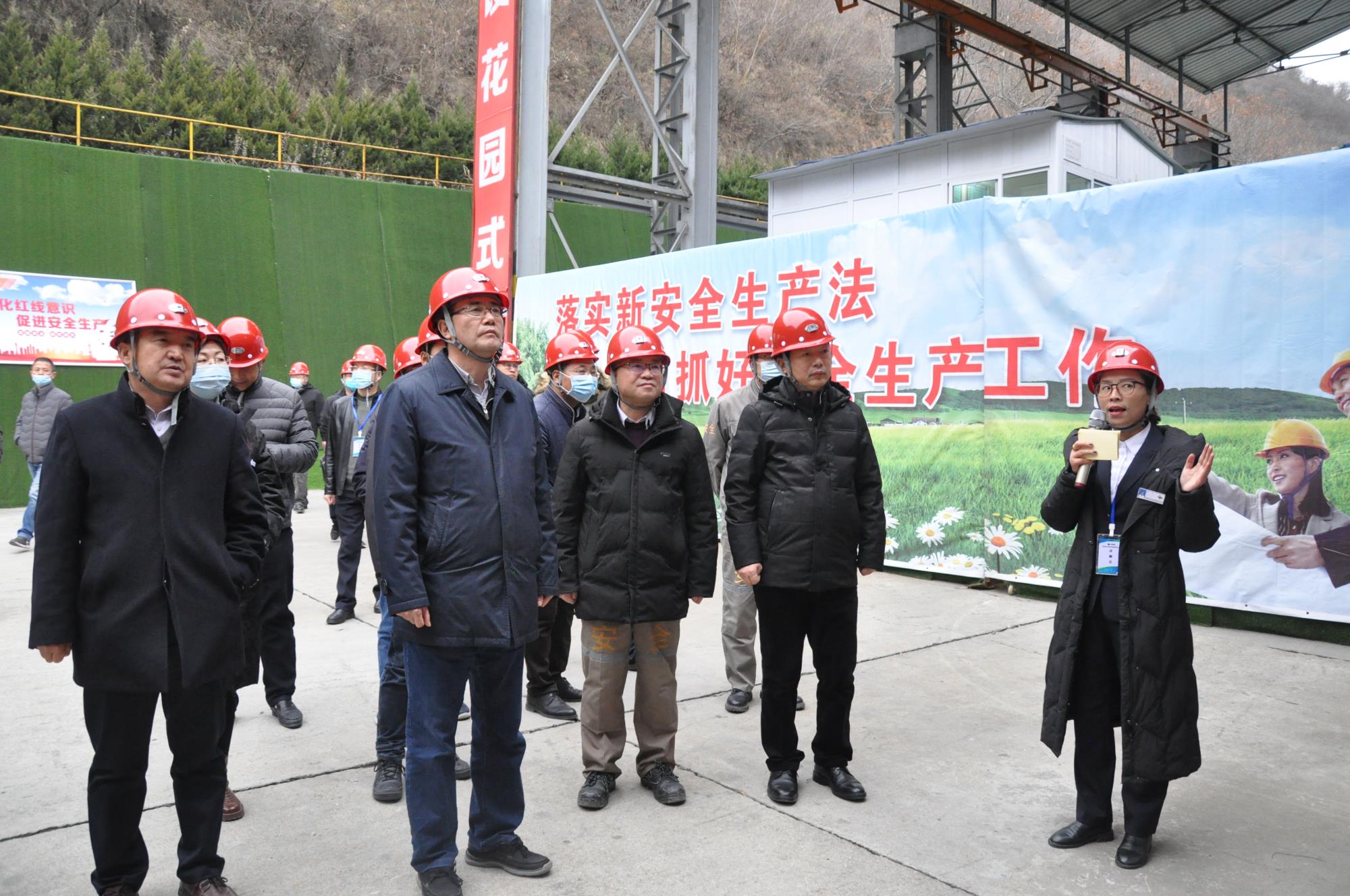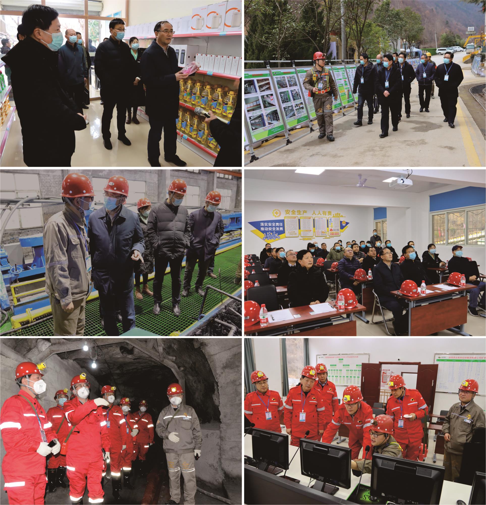觀摩團實地查看了震奧鼎盛公司機關辦公區、采礦工區、選礦廠、乾溝尾礦庫,詳細了解了公司選礦工藝流程、尾礦庫在線監測系統、井下無人遙感技術應用、廢石膠結充填系統運營和“六大系統”運行等情況,并對公司健康小屋、安全積分商城等特色項目表現出濃厚興趣。