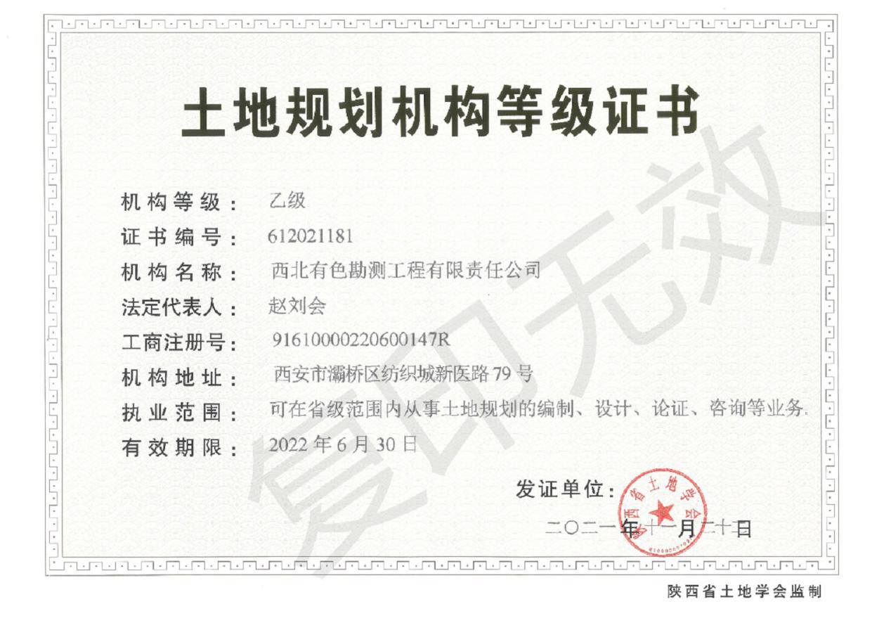 近日,地礦集團工程公司順利取得由陜西省土地學會頒發的土地規劃機構乙級資質證書,執業范圍涉及省內土地規劃的編制、設計、論證、咨詢等業務。