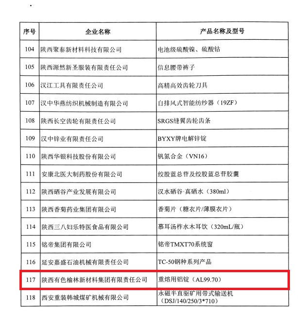 近日,陜西省工業和信息化廳公布了第二批“陜西工業精品”名單,榆林新材料集團產品重熔用鋁錠(AL99.70)榜上有名。