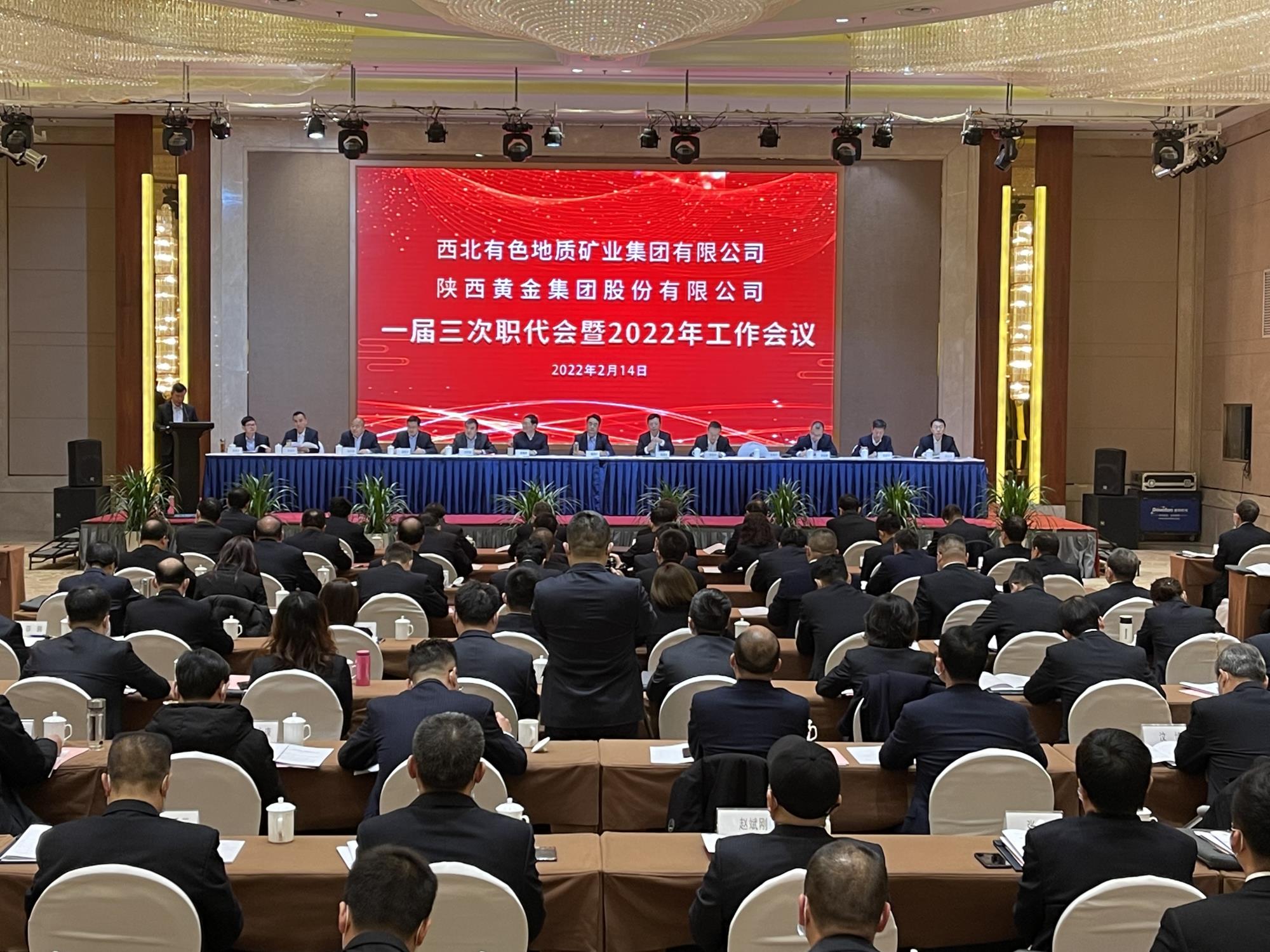 2月14日,地礦集團、黃金集團一屆三次職代會暨2022年工作會在寶雞召開。會議傳達落實陜西有色金屬集團二屆五次職代會暨2022年工作會議精神,全面總結2021年工作,深入分析當前形勢,安排部署2022年各項工作,號召全體干部職工苦干實干巧干,同心同向同行,以優異成績迎接黨的二十大勝利召開。兩集團黨委書記、董事長秦西社發表了題為《銳意進取埋頭苦干 奮發有為砥礪前行 全面開創兩集團高質高效發展的嶄新局面》的講話。地礦集團黨委副書記、總經理高菊生,黃金集團黨委副書記、總經理吳春虎分別作工作報告。兩集團領導班子成員李宏平、劉軍威、任革凡、龔甦文、田金鵬、楊開鵬、毛有平、但國慶、任治忠、趙普濤出席會議。