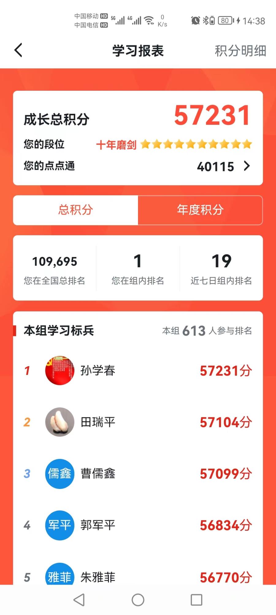 目前,全公司共有注冊學員613人,學員參與度、活躍度均在陜西有色金屬集團各單位長期處于領先位次,日均積分經常位居第一名。截止4月27日,鋁業分公司孫學春以總積分57289分,排名全國第108949名,2022年度積分5848分,排名全國第1188名,全公司學習強國學員總積分55000分以上達136人,黨委宣傳部田瑞平和陽極分公司曹儒鑫挑戰答題先后以2288和2323題順利通關。