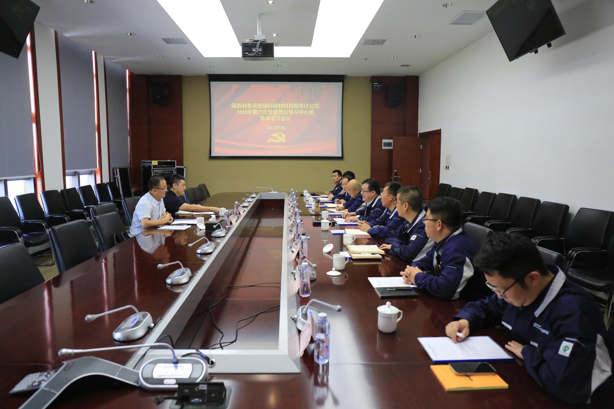 6月7日,天瑞硅材料黨委理論學習中心組舉行第六次集體學習會議,專題學習中國共產黨陜西省第十四次代表大會精神。陜西有色集團黨委委員、紀委書記、省監委駐集團監察專員魏國林到會旁聽督導。會議由天瑞硅材料黨委副書記、總經理蘇旭盛主持,全體黨委委員參加,黨群工作部負責人列席。