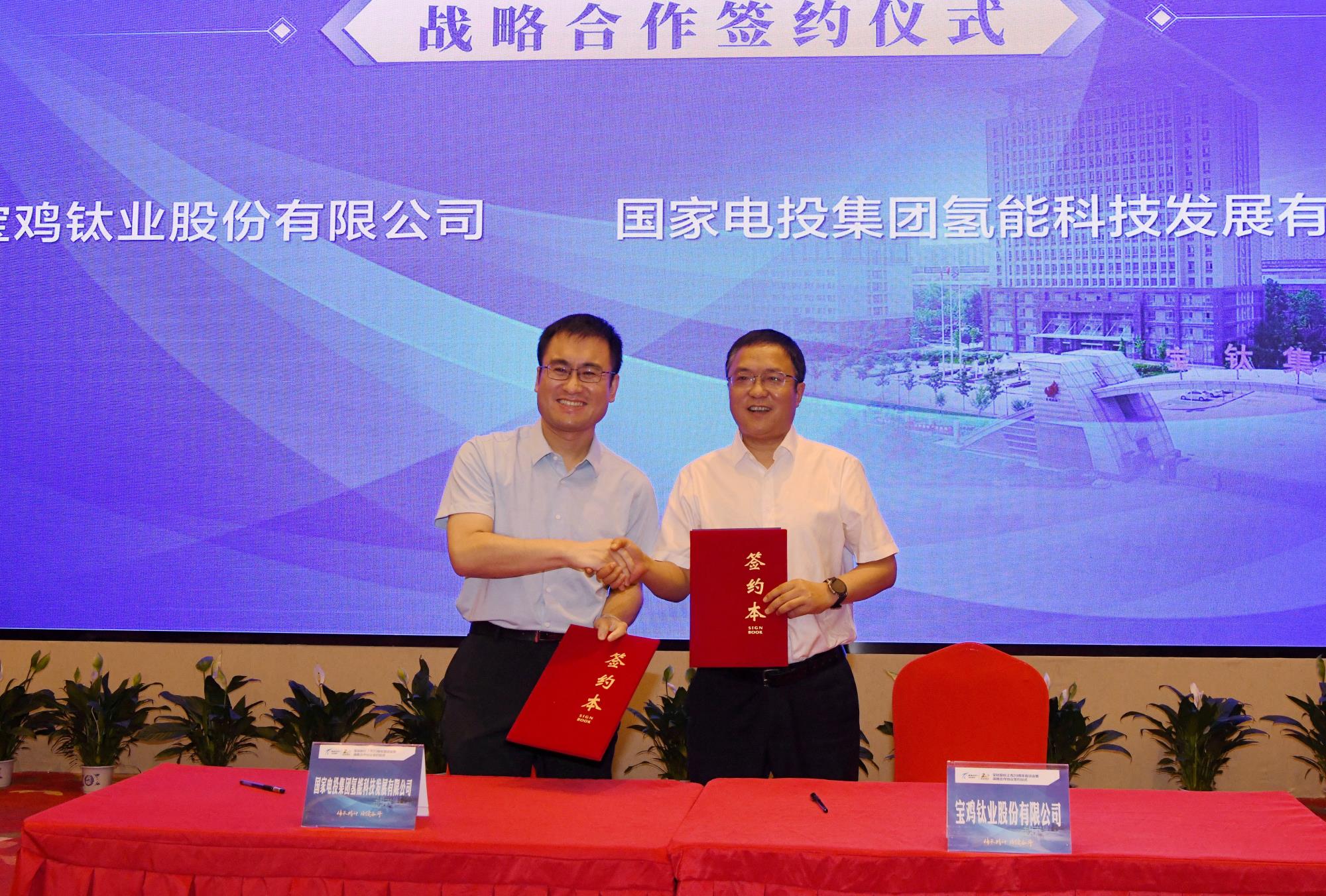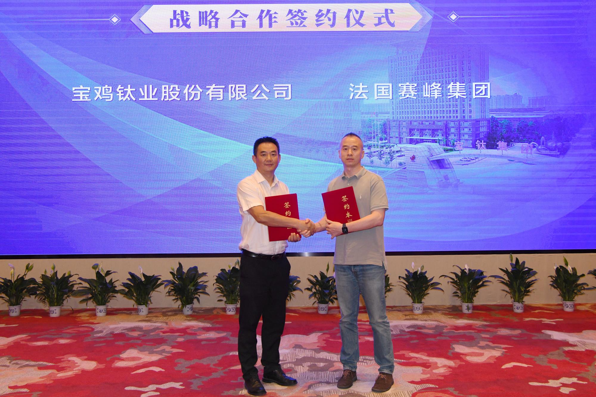會上,與會人員集體觀看了寶鈦股份上市20周年宣傳片。中國航發動力股份有限公司副總經理沈鵬與寶鈦股份副總經理何書林,國家電投集團氫能科技發展有限公司寧波綠動燃料電池有限公司總經理李鵬飛與寶鈦股份副總經理容耀分別上臺,簽訂了戰略合作協議。由于疫情原因,法國賽峰集團總部提前與寶鈦股份進行了視頻簽約,并安排賽峰集團亞洲區供應鏈經理周壽波與寶鈦股份外貿部主任張杰現場交換了簽訂的協議。