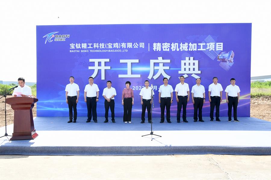 近日,寶鈦精工科技(寶雞)有限公司精密機械加工項目開工儀式在寶鈦眉縣產業園舉行。眉縣縣長張小平,寶鈦集團黨委副書記、總經理雷讓岐等出席儀式。眉縣縣委常委、副縣長王富強主持儀式。眉縣縣長張小平,寶鈦集團副總經理陳戰乾,寶鈦精工股東代表、董事張愛華分別致辭;寶鈦精工董事長溫偉介紹項目情況。
