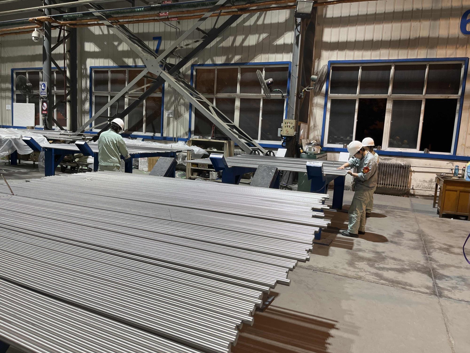 上半年,寶鈦集團線材廠設備管理部門先后開展550粗軋機CK17進口導衛改進、中軋4架甩機架軋制輸送裝置優化等熱軋線設備改造10余項,進一步提升軋件表面質量和軋制通過率,降低勞動強度,提高生產效率。自主實施后部精整工序工裝及輔助裝置改進,完成醫療用棒材“V”型退火料槽的設計制作,滿足高端醫療產品退火后棒材直線度不降低的工藝需求;圍繞航天航空緊固件用鈦合金大單重盤圓絲材研發項目,積極推進絲材拋光及檢測生產線、涂覆生產線和高精度無心車組、井式熱處理爐等固定資產投資計劃,滿足棒絲材新品研發和產業化發展需求,為棒絲材產業高質量發展提供裝備保障。