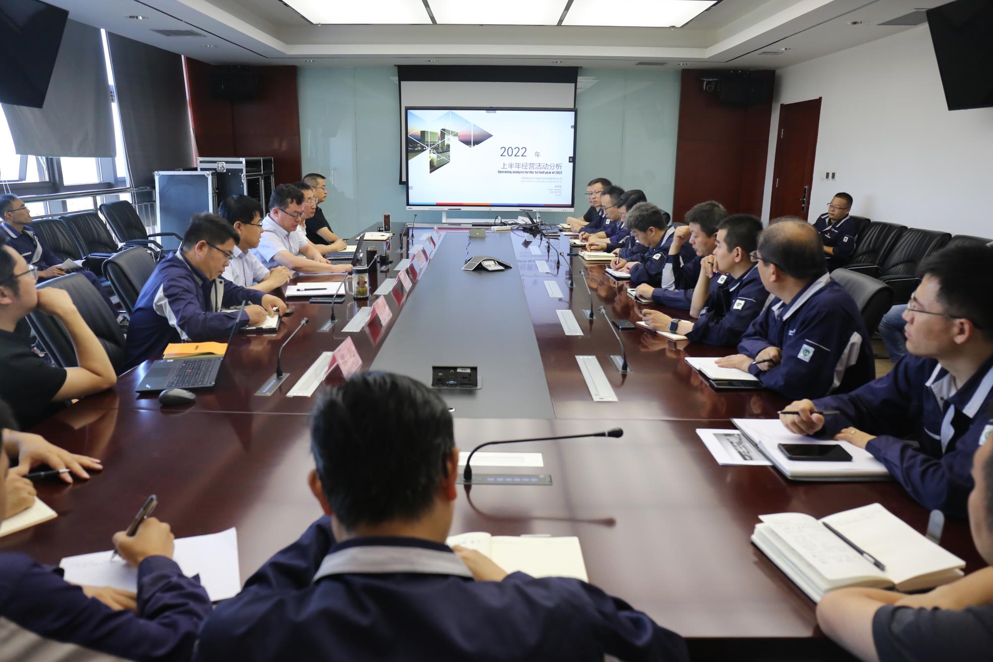 近日,天瑞硅材料在綜合辦公樓三樓視頻會議室召開了2022年上半年經濟活動分析會。會議由黨委副書記、總經理蘇旭盛主持,天瑞硅材料領導班子成員以及各部室負責人參加了會議。