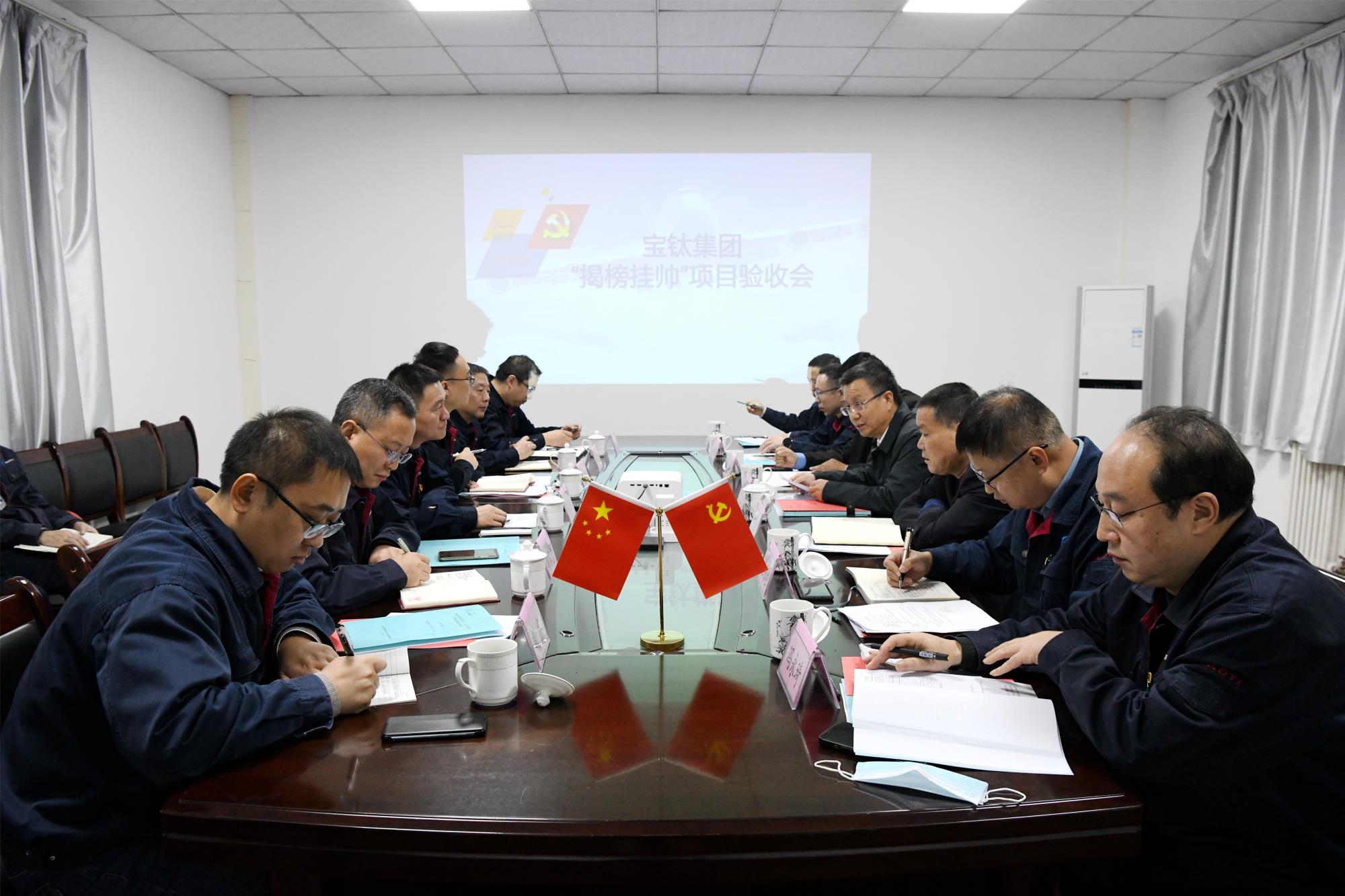 寶鈦集團“揭榜掛帥”活動領導小組成員、工作專班成員、項目黨支部委員會成員及各責任區負責人參加會議。會前,“揭榜掛帥”活動領導小組在現場對項目生產線和成果進行了參觀驗收。會上,項目相關負責人匯報了支部黨建工作及科研生產工作。