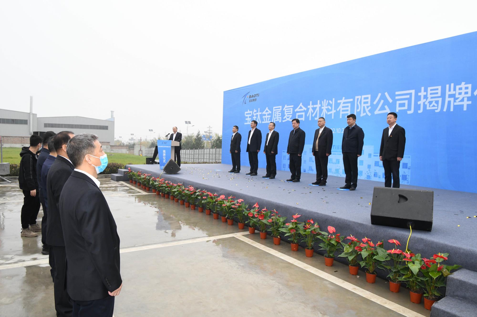 10月26日,寶鈦金屬復合材料有限公司揭牌儀式在寶鈦眉縣產業園舉行。寶鈦集團黨委副書記、總經理雷讓岐與寶雞市工信局局長巨緒昌共同為復合材公司揭牌。眉縣縣長張小平、寶鈦集團副總經理陳戰乾先后致辭,寶雞市工信局、眉縣縣政府、寶鈦集團以及復合材公司相關負責人參加揭牌儀式。