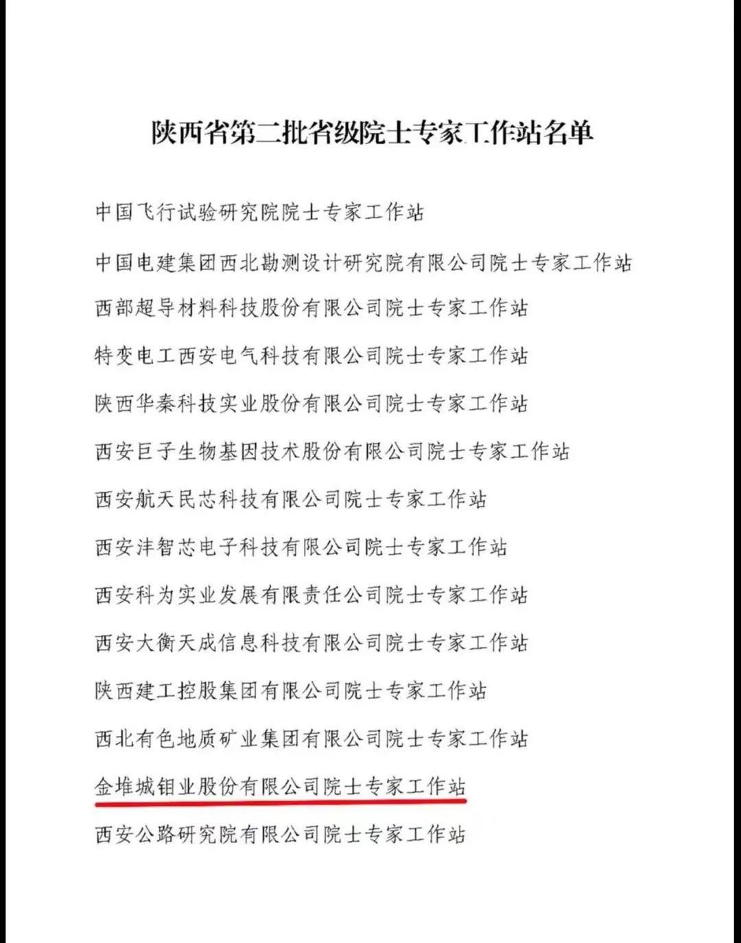 近日,從陜西省科協獲悉,金鉬股份順利通過陜西省第二批省級院士專家工作站評審。