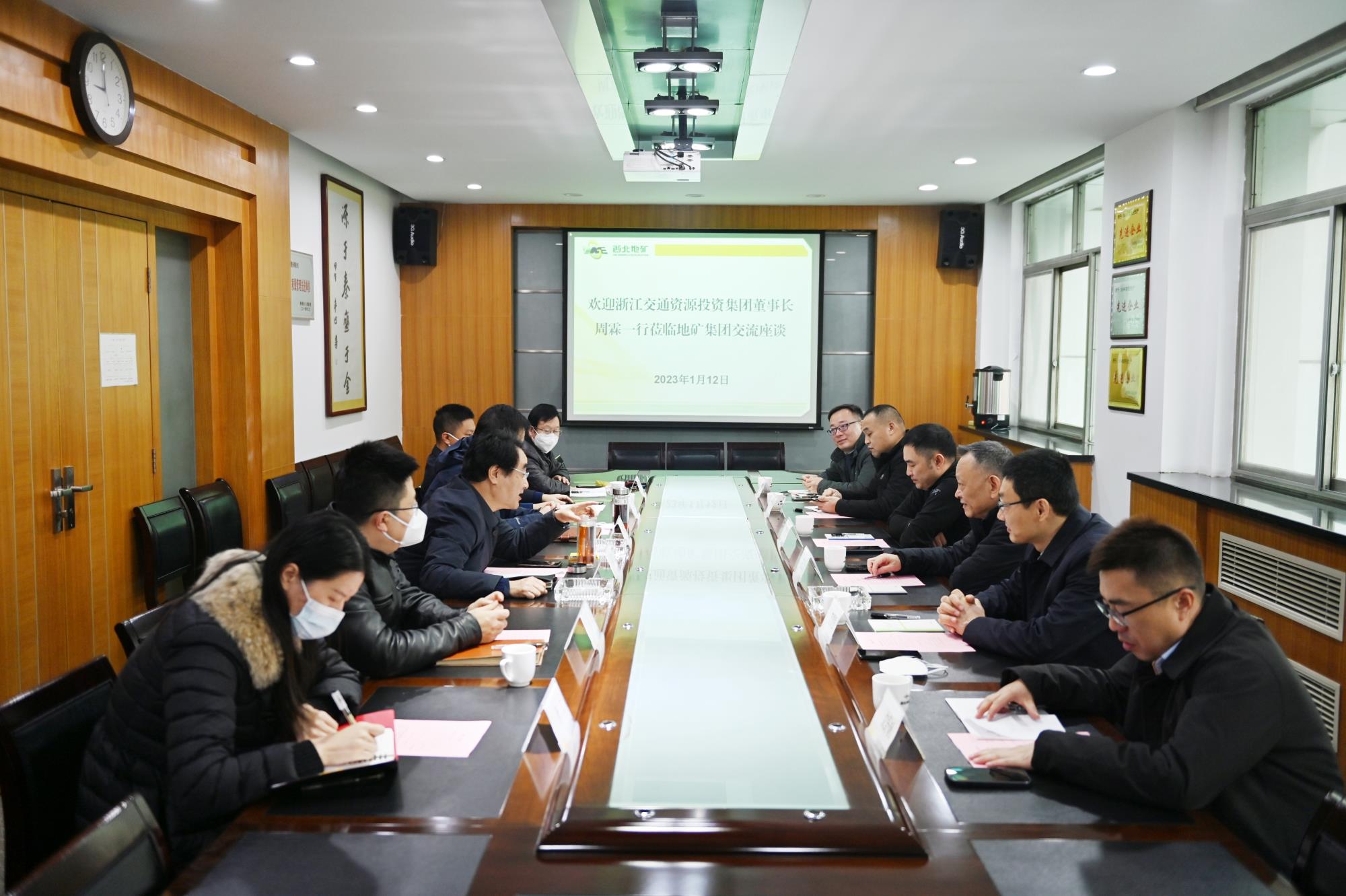 1月12日,浙江交通資源投資集團有限公司(以下簡稱資源公司)董事長周霖一行到訪地礦集團,圍繞“深化合作交流、攜手共促發展”進行交流座談,共同展望新年新前景,為雙方強強聯合推進項目合作開好頭、起好步。地礦集團黨委書記、董事長秦西社出席座談會,黨委副書記、總經理高菊生及有關部門負責人參加座談。